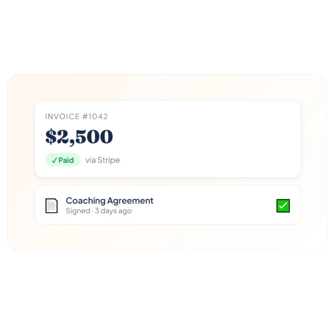 "My whole business runs from one dashboard. I send proposals, collect payments, and onboard clients without juggling apps."
